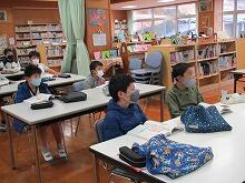 学校図書館では小学5年生が国語の授業受けていました。「図書館にある本を紹介する」ために、実際に図書館で授業を受け、この後「紹介する」本を選んでいました。