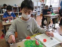 小学5年生は理科の授業で「電磁石」を勉強しています。今日は実験キットを使い、一人ずつ電磁石の特徴や性質を調べていました。電流を流した時だけ磁石になることや離れていても釘や方位磁針が反応することに驚きながら授業を楽しんでいました。