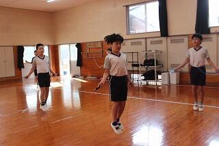 記録を伸ばせた学年、伸ばせなかった学年とありましたが、1番跳んだ回数の多かった6年生は、3分間で200回以上跳んでおり、流石最高学年と言える記録でした。また、来週(20日)にもジャンプタイム(自由跳び)があります。跳べなかった跳び方が跳べるようになったり、自由跳びが長い時間跳べるようになったりと子どもたちは順調に上達しています。技能や体力も向上してきており、次のジャンプタイムの記録が楽しみです。