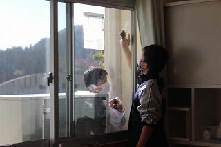 【奉仕作業】第3回目となるPTA奉仕作業は、卒業式・入学式の会場となる武道場内外の環境整備でした。武道場の窓は高い所にあり、普段なかなか手の回らない箇所でしたので、ホコリがたまり窓も曇っていたのですが、隅々まで丁寧に清掃していただき、ピカピカになりました。