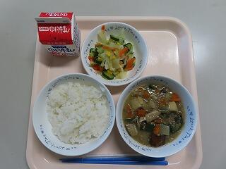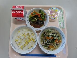 麦ごはん  千切り大根の炒め煮  かきたま汁  牛乳