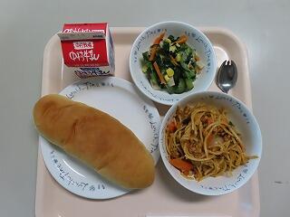 コッペパン  なすとひきにくのスパゲティ  ほうれん草のサラダ  牛乳