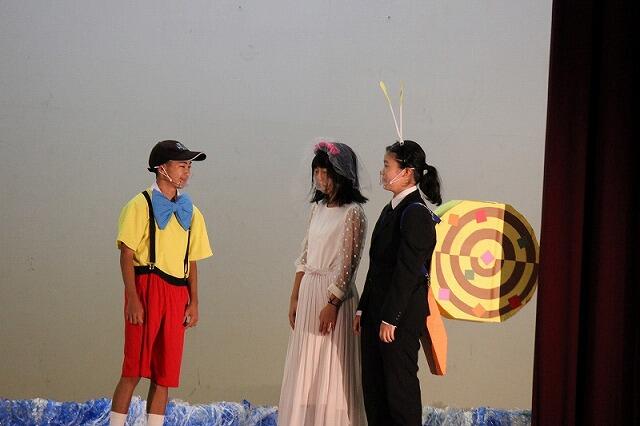 10月10日(土)に上野中学校の文化祭が行われました。午前中は、日本語弁論、英語暗唱弁論、1学年発表「上野の現状を学ぼう」2学年発表「スキット劇~Let's go on a school trip !~」3学年発表「劇 もう一人のピノキオ」、全体合唱・合奏が行われました。午後は、総合的な学習の時間などに練習を重ねた伝統芸能の発表が行われました。1,2年生は「上野臼太鼓踊り」、3年生は「神楽」を発表しました。準備や練習時間の少ない中、全校生徒で一致団結し、素晴らしい文化祭にすることができました。