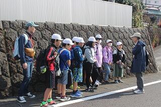 小学1・2年生は、地域の茶畑ときんかん畑の見学後、八幡大神社で昼食を食べて帰りました。