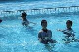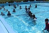 1学期最後の水泳の授業ということもあり、4・5・6年生合同で着衣泳の授業を行いました。水着の上に洋服を着てプールに入り、普段とは違う水の感覚に驚いていました。