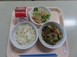 麦ごはん 千切り大根の炒め煮 豚汁 牛乳