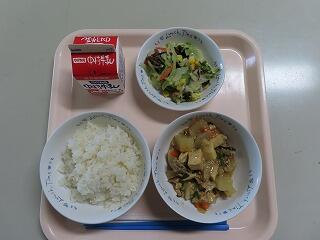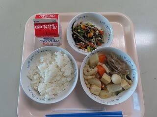 麦ごはん のっぺい汁 いそマヨネーズ和え カルフィッシュ 牛乳