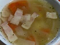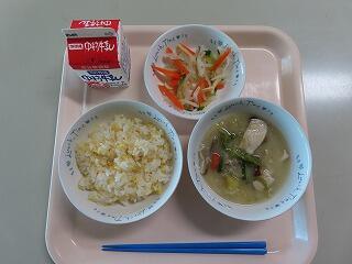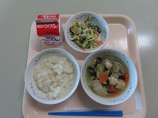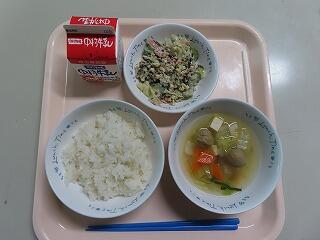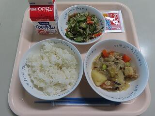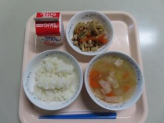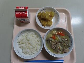 麦ごはん 千切り大根の炒め煮 ポテトスープ 牛乳