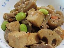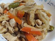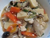 麦ごはん 鶏肉とカシューナッツの揚げ煮 田舎だんご汁 牛乳