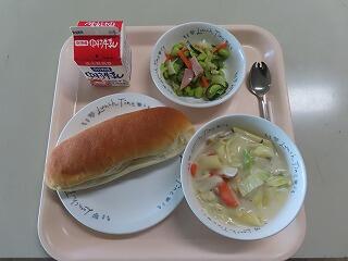 コッペパン ツナサラダ 冬野菜のクリーム煮 牛乳