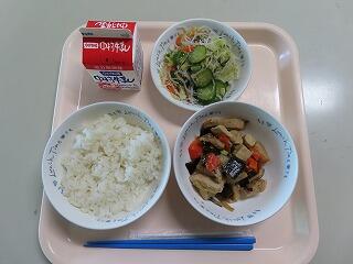 麦ごはん 厚揚げの中華煮 りっちゃんのサラダ 牛乳