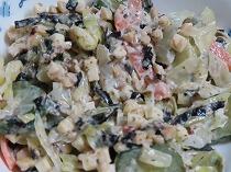 今日の献立の納豆サラダは小学6年生のリクエストメニューです