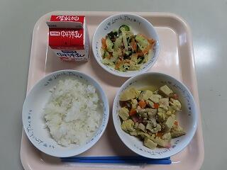 麦ごはん マーボー豆腐 青豆サラダ 牛乳