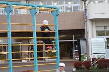 応援に来ていた子どもたちは、体育館のステージで工夫しながら遊んでいました。