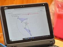 授業は図形の移動の特徴を調べるために、ワークシートにあるQRコードをタブレットで読み取り、指定されたホームページにアクセスします。指定されたページにある図形を操作しながら自分で調べてまとめます。その後、わかったことや自分の考えを持ち寄って全員で話し合うという流れでした。