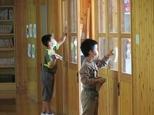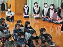 旭ヶ丘保育園は上野小中学校の近くにあり、本校の児童生徒の弟や妹も在籍していますし、小学生が訪問したりもしています。