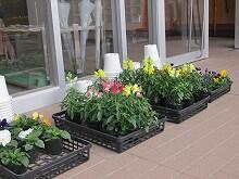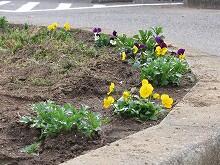 1・2年生がトマトやピーマンを植えていた花壇に、先日二十日大根などの野菜の種をまきました。芽が出て今は双葉も出ています。植えたものの種類や成長のようすを小学1年生が説明してくれました。