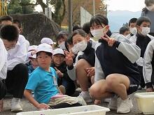 中学3年と小学6年の学級担任の先生も子どもたちと一緒に掃除をしていました。また、低学年の子どもたちは寒さに負けず、元気に遊んでいました。