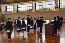 先日の地区秋季体育大会の結果、優勝・入賞により県中学校秋季体育大会に出場を決めた部活動生の、県大会に向けての選手推戴式を行いました。野球部は日之影中学校との合同チームで優勝、男子剣道部が団体で準優勝、その他個人戦で男子剣道、女子剣道、女子ソフトテニス部が県大会に出場します。応援をよろしくお願いします。