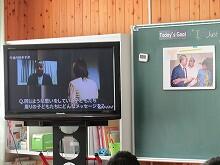 今日の相互参観授業は中学2年生の英語です。授業はこれまでに学習した受動態の用法を使ってクイズをつくり、グループで出し合い、授業の終わりには練習問題を解き、学習の確かめをしました。ICTの活用のポイントは、①「前回までの学習内容を簡潔に振り返るために大型テレビを使う」、②「今回学習した用法で身近なことを表現するためにタブレット(パワーポイント)を使ってクイズをつくる」でした。子どもたちがインターネットを利用して写真や図を探したり、自分の画面を大型テレビに接続したりする操作を自分でてきぱきとしている姿に感心しました。