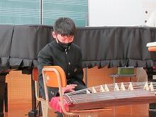 音楽の授業では、「日本の音楽や和楽器」を勉強していて、実際に琴の弦をはじき、音色を楽しんでいました。
