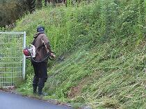 さっそく作業を始めました。グランド横の植え込み、東側駐車場横、保健室前、校舎東側斜面、刈ったり集めたりした草は、軽トラックで運んでいきます。
