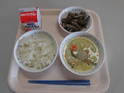 冬至の日の行事給食でもあり、地域産のお米、とうきび、ほうれん草、ゆず、みそが食材に使われています。