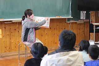 11月16日(木)の2時間目におはなし会がありました。本日は、「おはなしの森」の皆さんと夫婦バンド「ララルー」さんにお越しいただきました。ララルーさんの単独の演奏から始まり、おはなしの森の皆さんの絵本の読み聞かせや芝居を披露してくださいました。最後には、おはなしの森の皆さんとララルーさんとの共演した演劇を、パフォーマンスしていただきました。子どもたちからは、「良い曲・演奏だった」「面白かった」と感想を述べており、感動している様子でした。おはなしの森の皆さん、ララルーさん、お忙しい中ありがとうございました。
