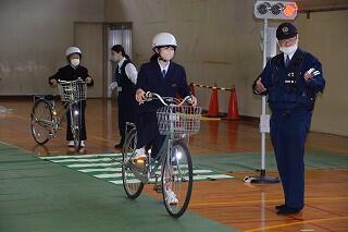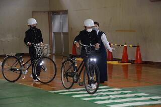 自転車の乗り方については、体育館で行いました。中学生のようすを紹介します。