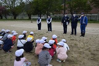 4月14日(金) 交通安全教室を行いました。高千穂警察署や上野駐在所の方々にきていただいて、子どもたちに交通安全に関する正しい知識を、体験とともに学ばせてもらいました。