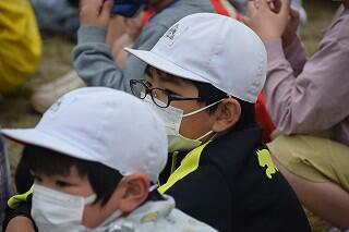 かけ足で、それぞれの団の席に移動します。小学1,2年生の走るペースに合わせて、団長さんがリードしてくれました。