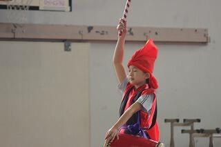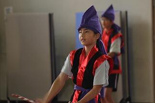 5、6年生は、沖縄の伝統芸能である「エイサー」を披露しました。夏休み期間には、姉妹都市である沖縄県豊見城市の方々から踊りについてたくさんのことを学ぶことができました。昼休みにも大きな声をあげて練習をしてきました。運動会で披露したときよりもさらにキレが増していました。