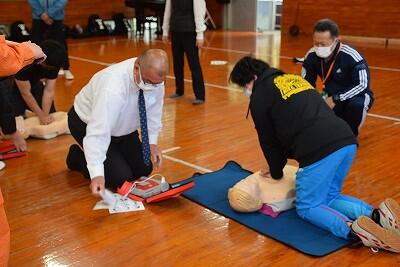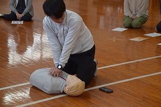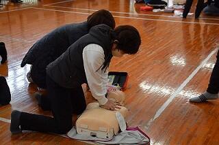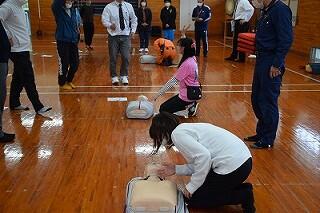 携帯電話を使って119番通報したあとの指示で行う救助を体験しました。