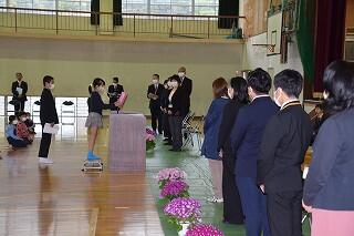 校歌斉唱も先生方にとっては最後の機会となりました。転任・退職される先生方の今後のご健康とご活躍をお祈りいたします。