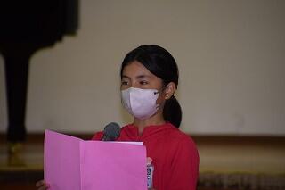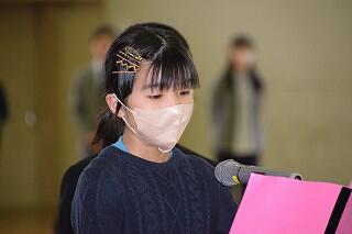 小学6年生代表児童と中学校生徒会代表生徒が歓迎のことばを伝えました。