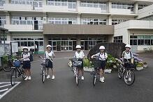 中学生と小学生が一緒に見送る中での剣道部出発の場面でした。上野小中学校ならではのいい光景だなあと感じました。