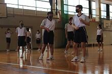 中学生の6時間目は、運動会に向けた「全校体育」でした。午後からの日差しが強かったため、上野体育館で行いました。今日の内容は、開閉会式の時の大まかな立つ位置の確認と団長・リーダーを中心としたダンスの練習でした。