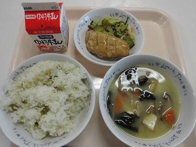 麦ごはん ちくわの磯辺揚げ 昆布和え