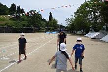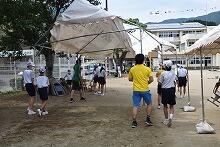 ※ 今日の練習は、屋外で、人と人との距離が確保できているので、マスクは着用しておりません。しかし、マスクの着用を希望している児童生徒には着用させています。