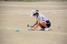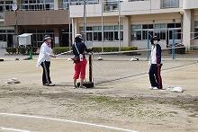 4時間目は中学生でした。練習を早めに切り上げ、トラックをトンボでならしたり、ほうきで掃いたりしていました。
