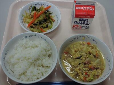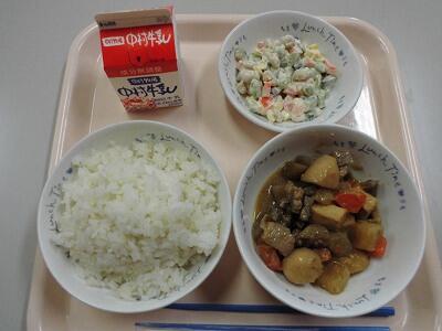 今日はぬくもりランチです。地域の食材として、神楽うどんに地鶏頭、椎茸、人参が、サラダには大根とキャベツが使われています。