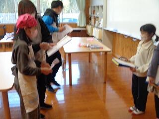 今日(2月20日(月))は高千穂中学校の栄養教諭の先生にお越しいただき、お弁当のメニューや作るときに気をつけることなどを教えていただきました。