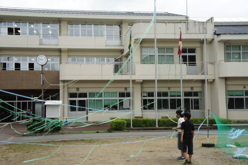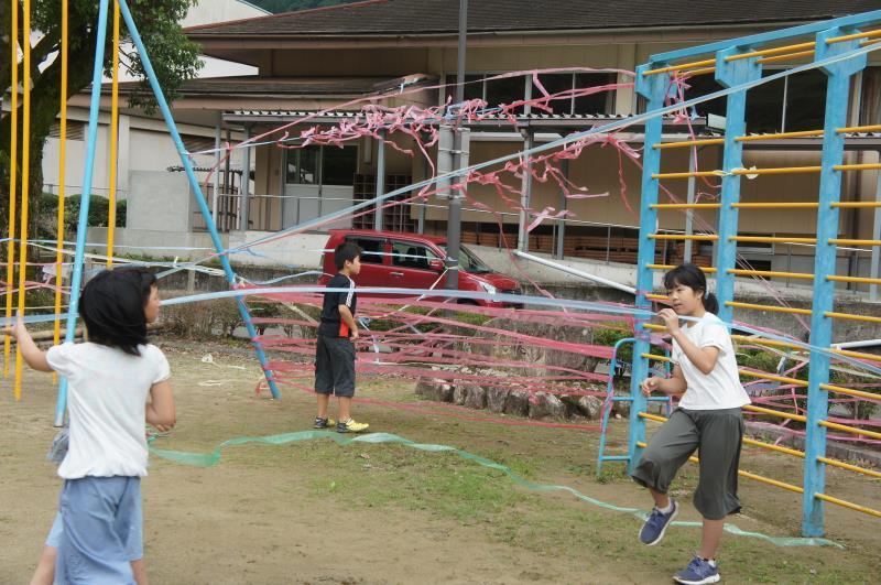 子どもたちは、PEテープが風を受けて動く楽しさを感じているようでした。