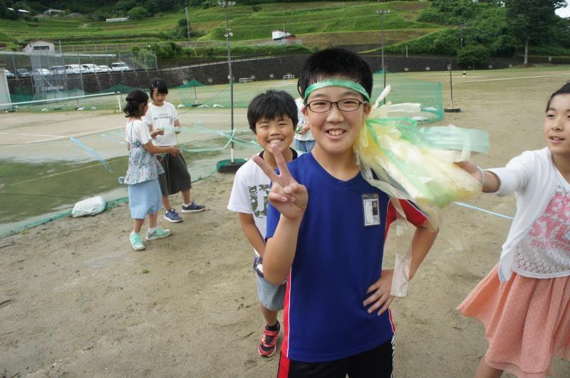 今日は、あいにくの雨でしたが、1年生から6年生のみんなでなかよくじゃんけんのゲームで盛り上がりました。