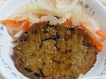 麦ごはん 根菜ハンバーグ 紅白なます 雑煮 牛乳