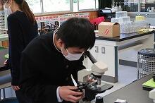中学3年生が理科の授業でタマネギの根の先端を使い、細胞分裂のようすを観察していました。塩酸で処理をして手順どおりプレパラートを作成しましたが、目的の染色体はなかなか発見できず、苦労していました。一人一台ずつ顕微鏡を使い、一生懸命観察している子どもたちの姿がとても良かったです。