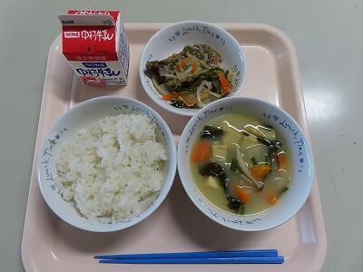 麦ご飯 千切り大根の炒め煮 さつま汁 牛乳