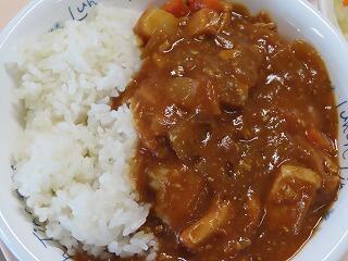 トマトチキンカレーライス コーンとチーズのサラダ 牛乳
