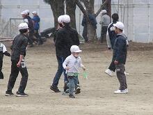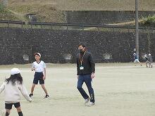 今日の上野は曇り空で、小学校低学年が下校する頃には雨も降り始めました。昼休み時間は、まだ雨は降っていなかったので、運動場で追いかけっこやドッチボール、サッカーなどをして多くの小中学生が遊んでいました。その中には、一緒に遊んでいる先生の姿もありました。