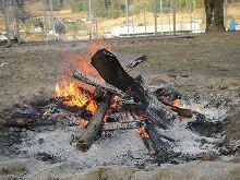 焼き芋は運動場の端に穴を掘り、そこに木と落ち葉を入れて火をつけ、火が弱まったところでぬれた新聞紙とアルミホイルでくるんだサツマイモを入れて焼きました。今日の焼き芋のために、子どもたちは校庭の落ち葉も集めていました。